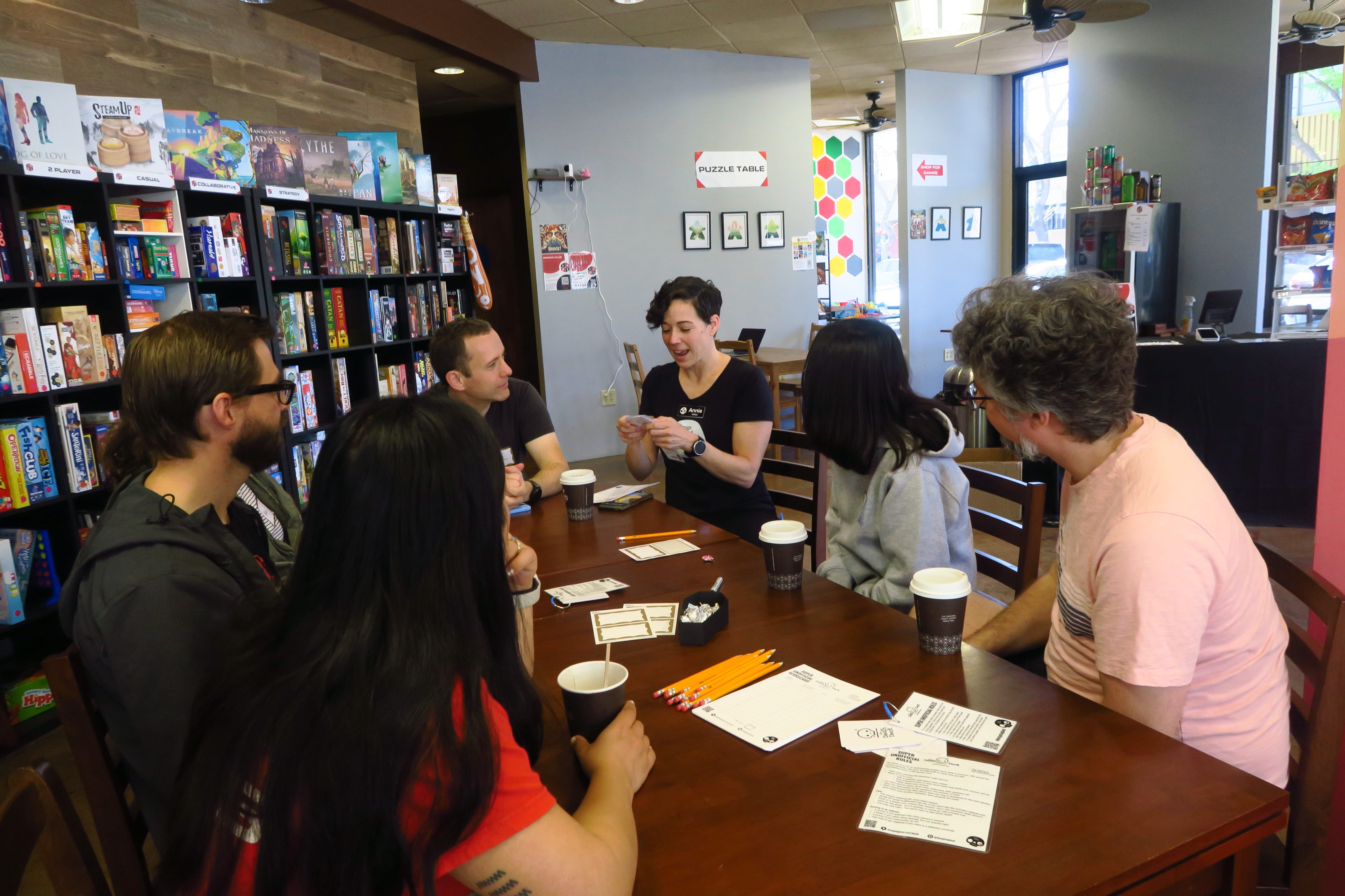 [Serious thanks to Rebecca Wang and Sean Forman at Next Level Board Game Cafe in downtown Mountain View. I’m grateful for their willingness to entertain my out-of-the blue offer, and doing so within weeks of their wedding! Not only did they let me use their space without hesitation, but they generously broadcasted the event to their email list, and shared it across Discord, Facebook, and Instagram. It was amazing to create this connection with another small business in my community. If you like games, theirs is an excellent spot to explore.]